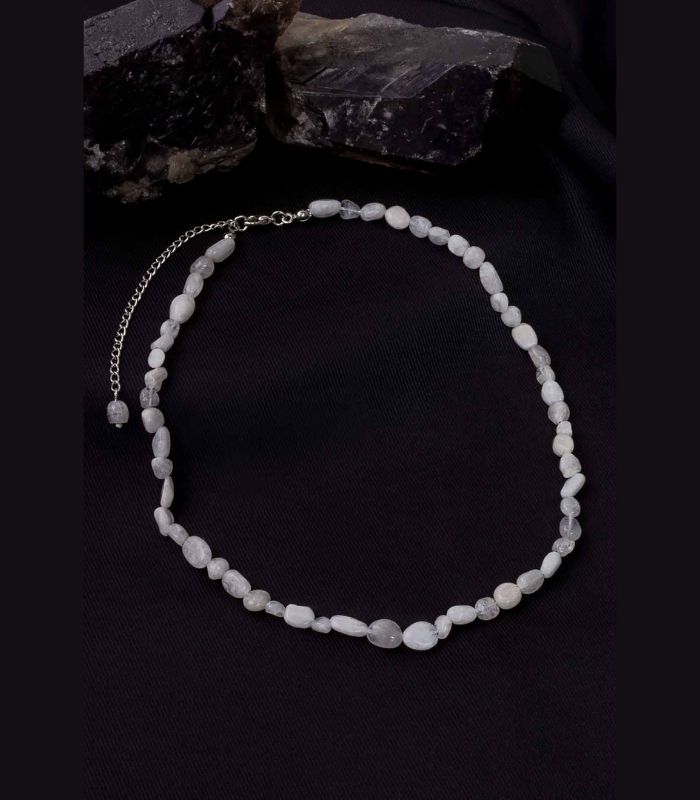 Ay Taşı Kolye Şekilsiz Doğaltaş 7–8mm Taşlar 47cm Uzunluk + 7cm Uzatma Unisex Model