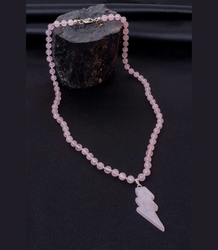 Pembe Kuvars Doğaltaş Kolye 6 mm 56 cm Kolye Ucu 38×19 mm 🌸