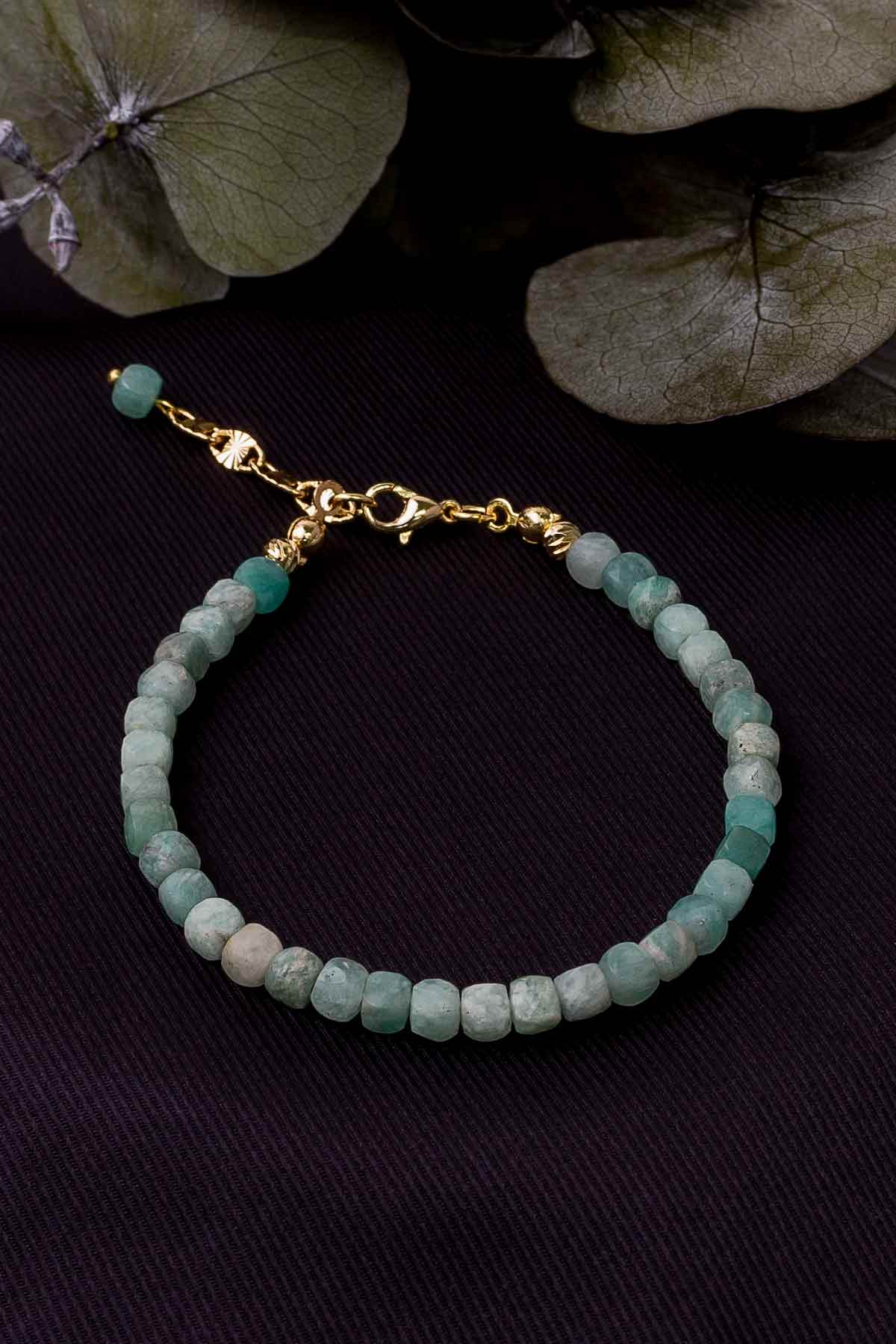 Amazonit Doğaltaş Bileklik Küp Kesim 4×4 mm 19 cm + 3 cm Uzatma Hakikat, Cesaret ve Umut Taşı