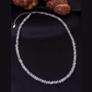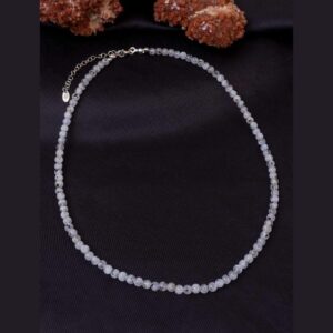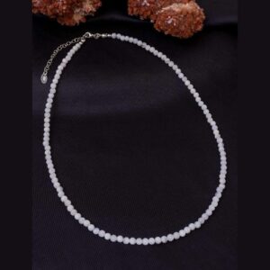 Ay Taşı Doğaltaş Kadın Kolye 4mm Taşlar 42cm + 4,5cm Uzatma 925 Ayar Gümüş Aparatlı