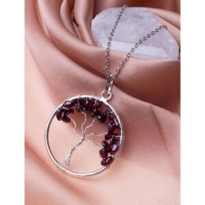 Doğaltaş Lal Granat Hayat Ağacı Kolye 4×4 cm Kolye Ucu 50 cm Zincir