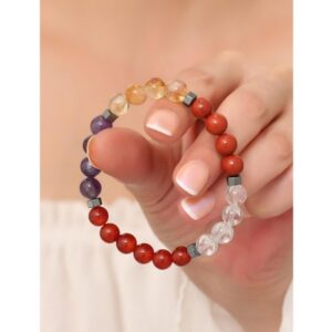 Koç Burcu Doğaltaş Bileklik 8 mm 20 cm Sitrin Kristal Kuvars Ametist Kırmızı Akik Kırmızı Jasper Hematit