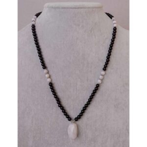 Ay Taşı Oniks & Hematit Doğaltaş Kolye 0,6cm 1,5mm Taşlar 2,5×1,5cm Kolye Ucu 60cm Zincir Özel Tasarım