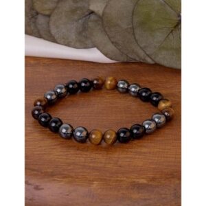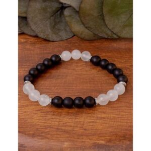 Selenit Oniks & Hematit Doğaltaş Bileklik 8 mm & 4×1 mm 19 cm Elastik İpli