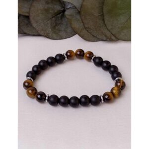 Kaplangözü & Oniks Doğaltaş Bileklik 6mm & 8mm Küre Kesim 19cm Elastik Tasarım Erkek & Kadın Modeli