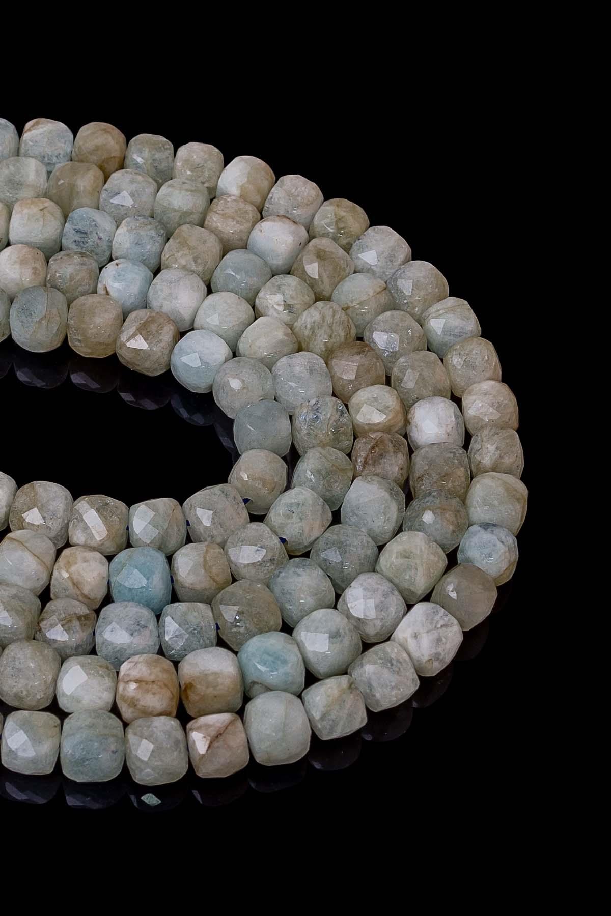 Akuamarin Doğaltaş Dizi Küp Kesim 7×7 mm 54 Adet 40 cm A Kalite