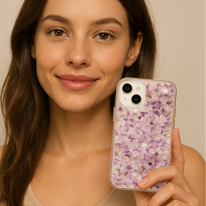 Ametist, tarih boyunca stres azaltıcı, zihinsel denge sağlayıcı ve negatif enerjiyi uzaklaştırıcı özellikleriyle bilinir. Telefon kılıfında ametist taşının bulunması, günlük yaşamınızda pozitif bir etki yaratabilir.
