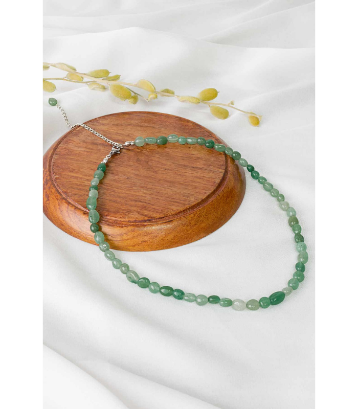 Aventurin Doğaltaş Kolye Şekilsiz 6×8mm Taşlar 40cm + 8cm Uzatma Zincir Kadın Modeli