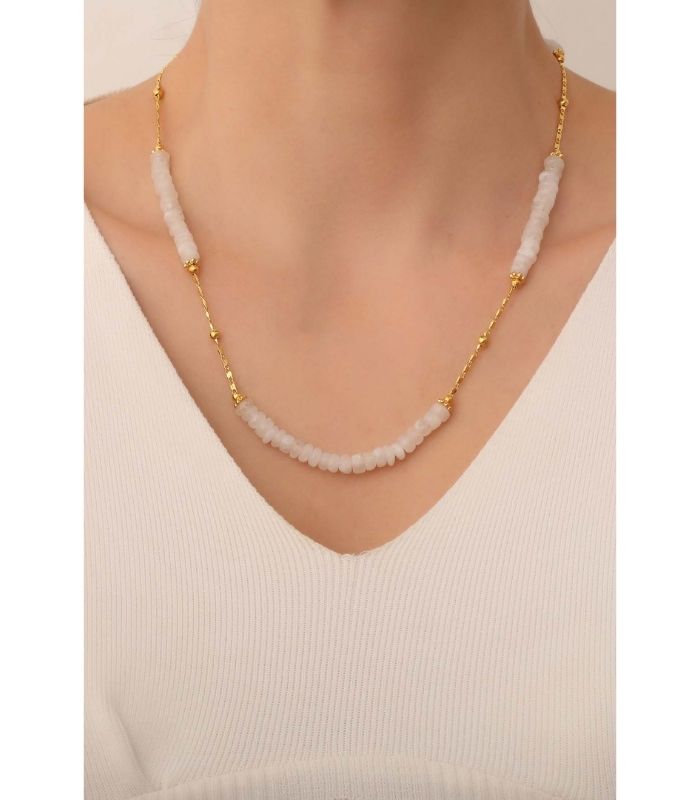 Ay Taşı Küp Kesim Doğaltaş Kadın Kolye 7×3mm Taşlar 50cm + 8cm Uzatma Altın Kaplama Aparatlı