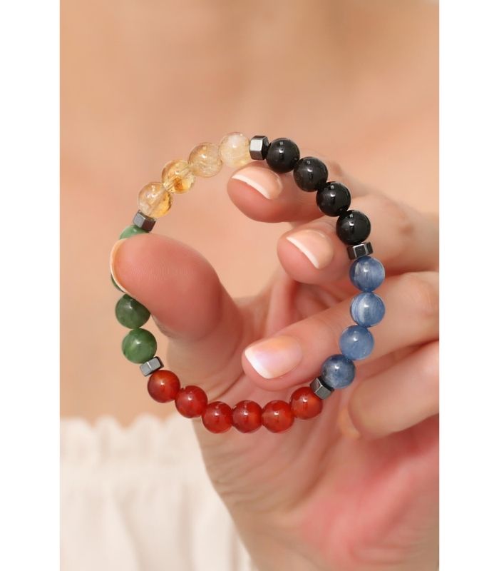 Başak Burcu Doğaltaş Bileklik Kyanit Kanada Yeşim Kırmızı Akik Obsidyen Hematit 8mm 20cm