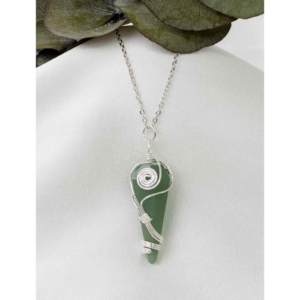 Aventurin Doğaltaş Kolye 4,5×2 cm Kolye Ucu 50 cm Zincir Şans & Kalp Çakrası Taşı