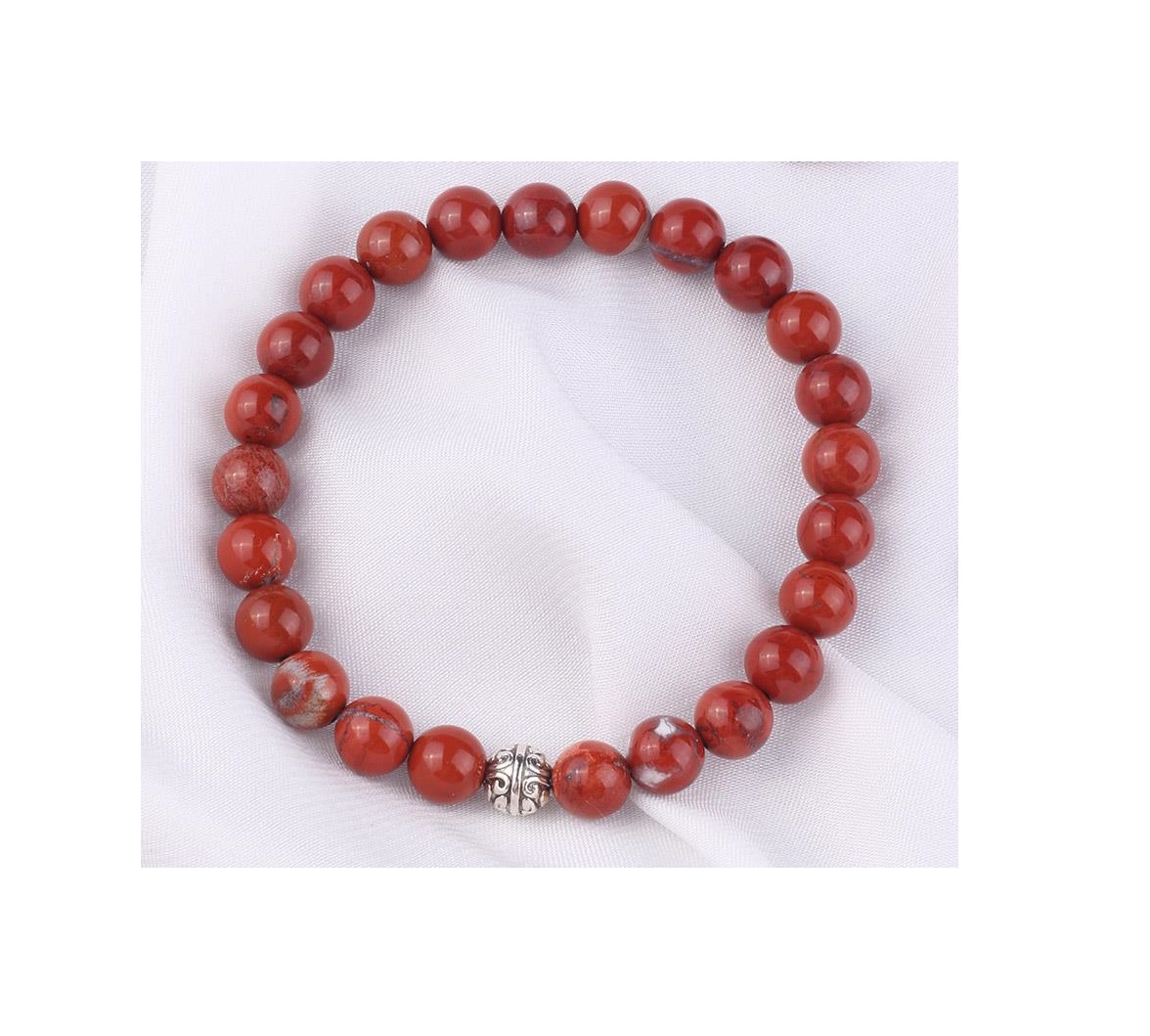 Kadın & Erkek Kırmızı Jasper Bileklik Doğaltaş Küre Kesim 8 mm 20 cm Elastik Misina İpli
