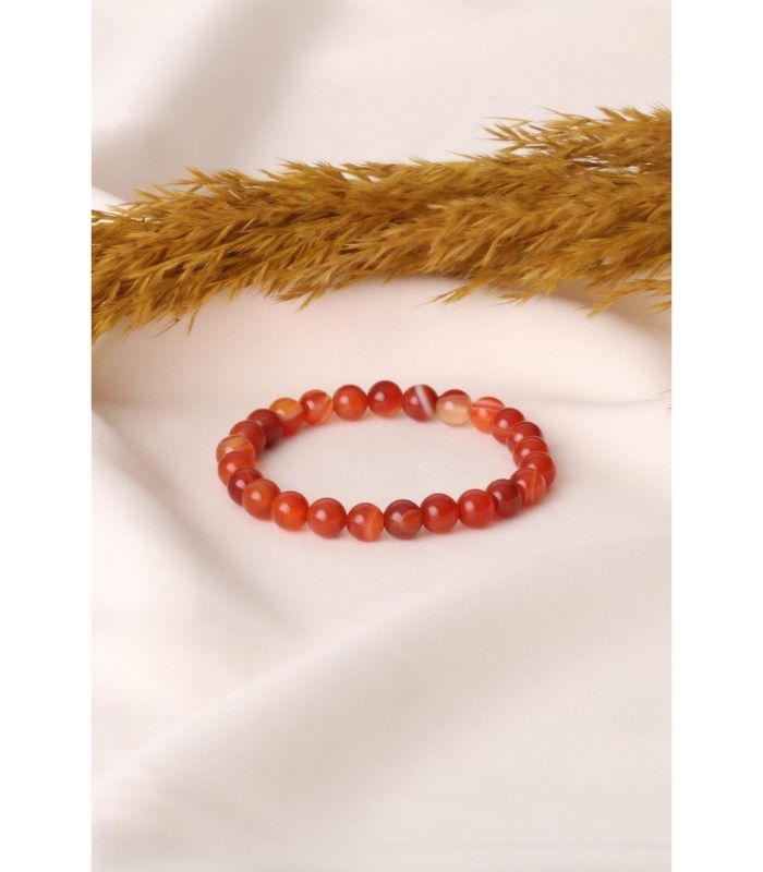 Kırmızı Akik Doğaltaş Bileklik Küre kesim 8mm 20cm