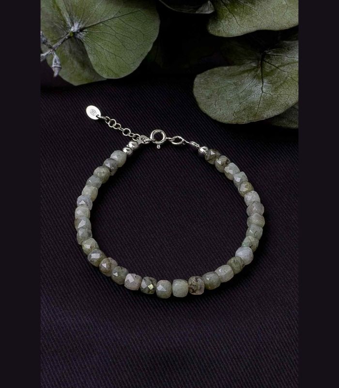 Labradorit Doğaltaş Bileklik Küp Faset Kesim 4×4 mm 19 cm + 3 cm Uzatma 925 Ayar Gümüş Aparatlı