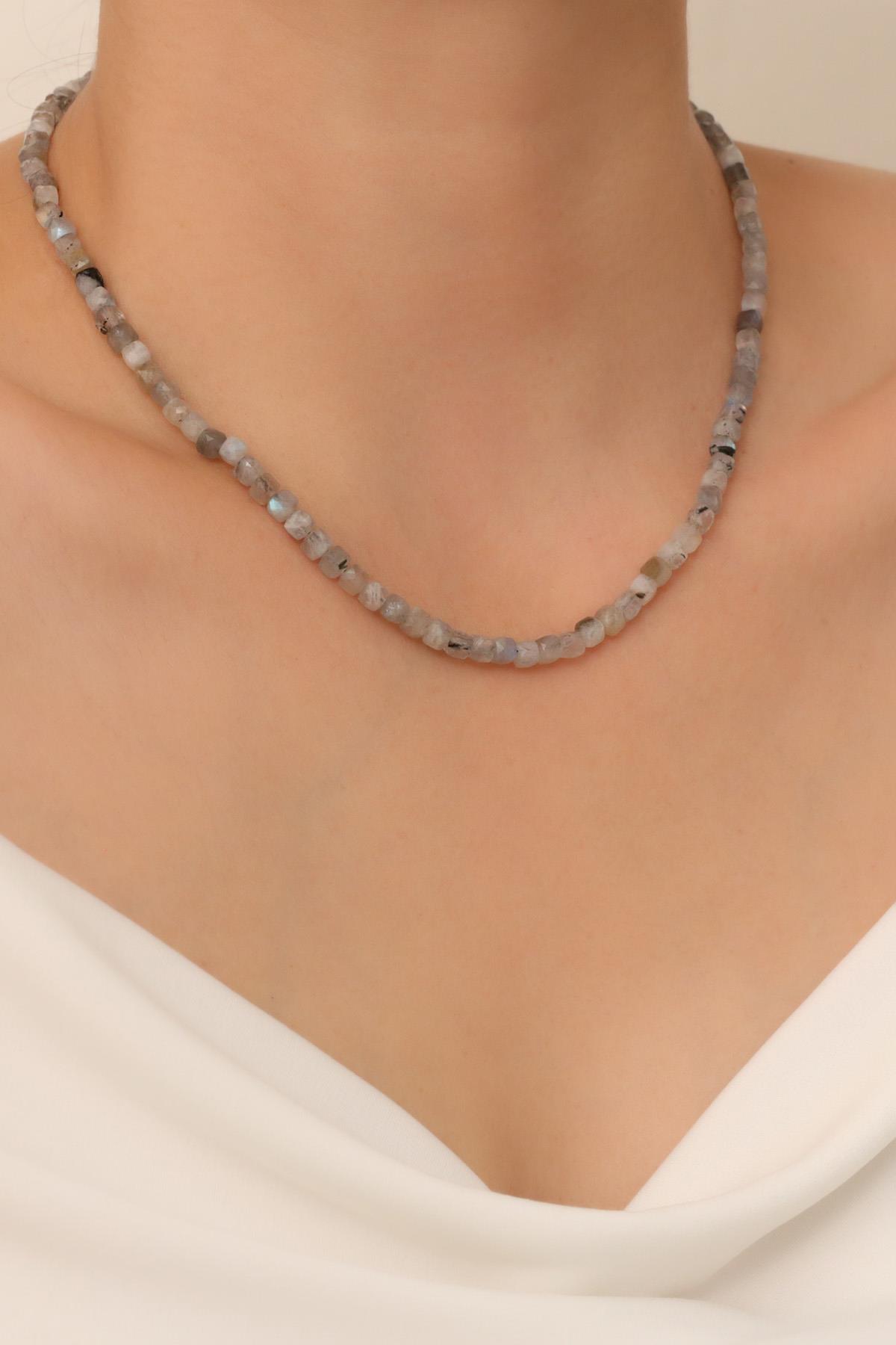 Labradorit Doğaltaş Kolye Küp Faset Kesim 4×4 mm 41 cm + 6 cm Uzatma A+ Kalite Rodyum Kaplama Hanımefendilere Özel
