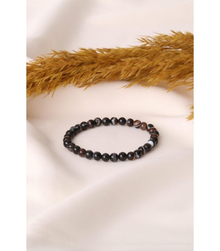 Siyah Akik Doğaltaş Bileklik 6 mm 20 cm Her Yaşa Uygun Hediye